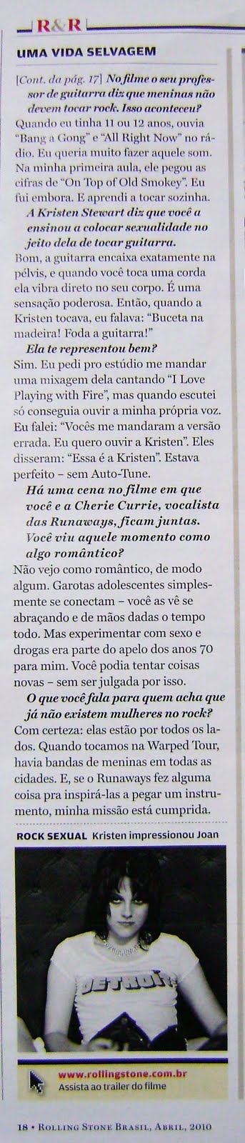 15:27 Джоан Джетт говорит о Кристен Стюарт в бразильском Roling Stones | |